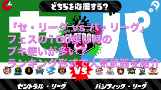 フェス関連 【フェス攻略】「どちらを応援する? セ・リーグ vs パ・リーグ」フェスの100傑は何のブキ使いが多い?ランキング形式で人気武器をご紹介